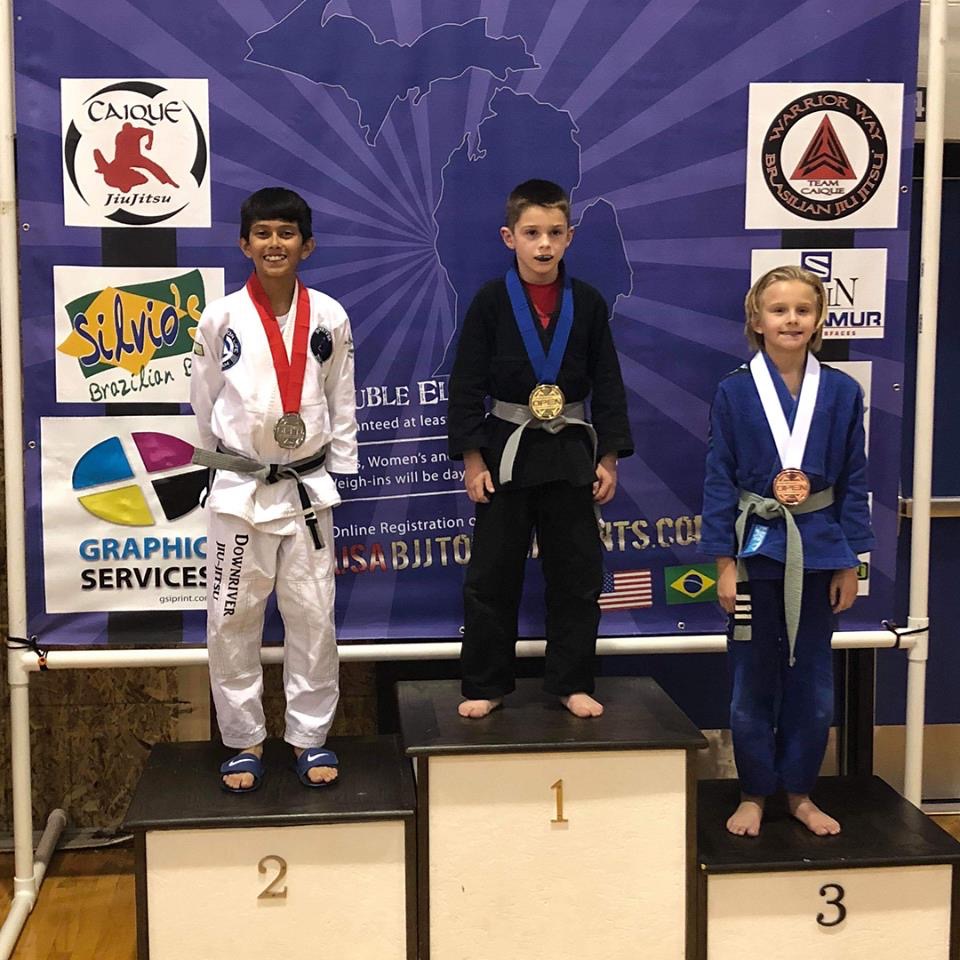 Our kids class has been up and running for several months now and we are proud to see our kids learning all the jiu jitsu basics. We are working on introducing more complex techniques as the kids get the hang of rolling on the mats! Some of our kids did their first competition at the Michigan Open October 20, 2018 and we won some medals!! Four of our six junior competitors won medals! Congratulations to Alivia, Serenity, Ryan and Gavin!!!
